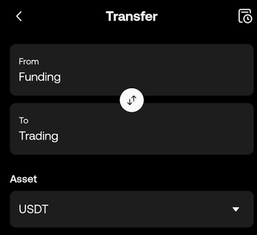 입금된 자산은 Funding 계좌에 있고, 거래는 Trading 계좌에서 이루어지기 때문에